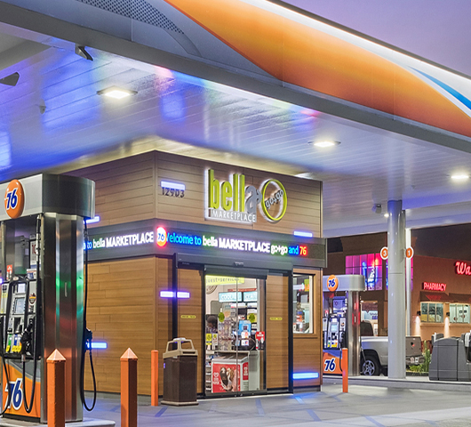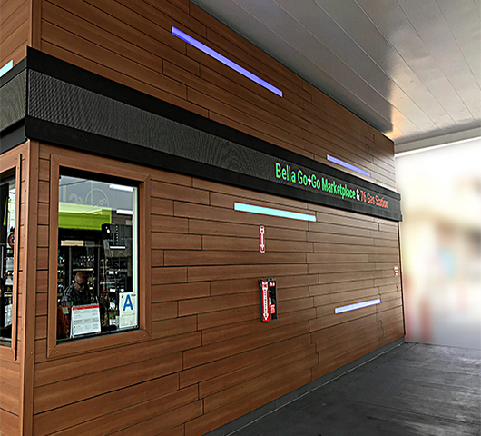 In collaboration with De-Edge Studio, Impact Lighting constructed a fresh and modern face for the station’s ‘Bella’ convenience store. The project turned a circa 1970 kiosk fuel facility into a vibrant and modern building that has elevated the consumer’s experience to a completely new level.